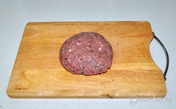 Мясо мы перемалываем вместе с луком, приправляем травами, хмели-сунели, перцем-солью. Вымешиваем до плотного состояния и отбиваем.