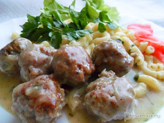 РусскаяОбычные тефтели из домашнего фарша тушим немного в бархатистом соусе, что придает им насыщенный вкус и сочность.