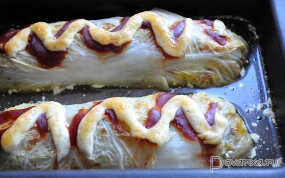 тем же манером, что обычные голубцы – сворачиваем, закрывая боковые края.
