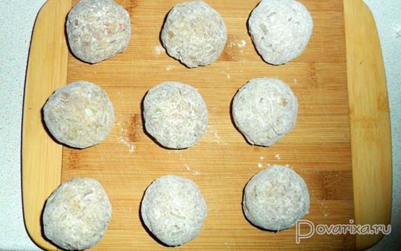 - Солим и перчим по вкусу, добавляем горсть целых овсяных или размельченных в крошку кукурузных хлопьев, мускатный орех, подливаем немного молока или воды, чтобы получилось сочно, разбиваем яйцо и все это хорошо вымешиваем, после чего не забываем отбить фарш, поднимая на руке и шлепая в миску раз 20-30. Оставляем в миске минут на 20, чтобы хлопья пропитались и разбухли.