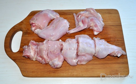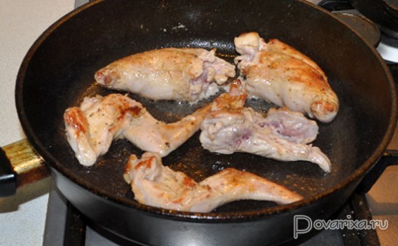 Для качественной жарки в сковороде перекаливаем 4-5 минут масло, раскладываем кусочки мяса, быстро подрумяниваем с обеих сторон, примерно по 2-2,5 минуты сторону.