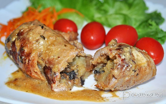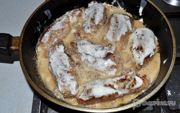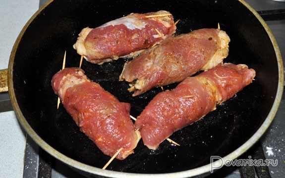 Ставим сковороду на большую конфорку, включаем сильный огонь и перекаливаем пару ст. ложек масла. Жарим рулетики быстро, с 2-3 сторон, до корочки.