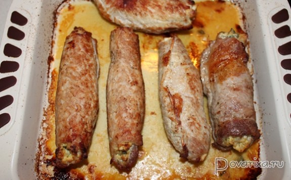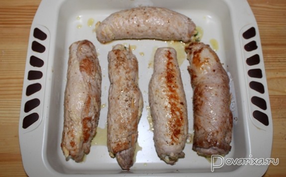 Накрываем вынутую форму фольгой, даем рулетикам отдохнуть 10-12 минут – и на стол.