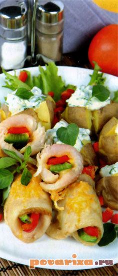 РусскаяРыбные рулетики с сыром и сладким перцем внутри удивительно гармонируют вкусом с запеченной картошкой – которую мы тоже делаем с начинкой. Словом – попробуйте.