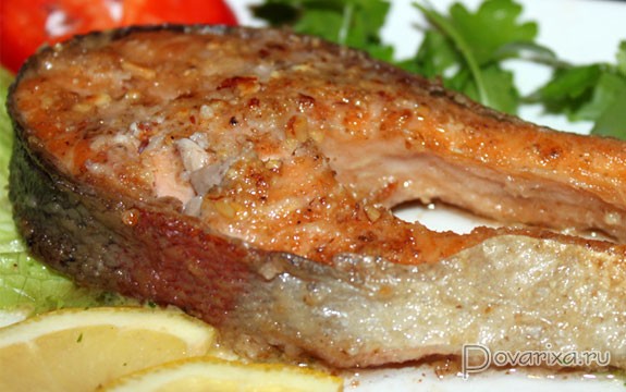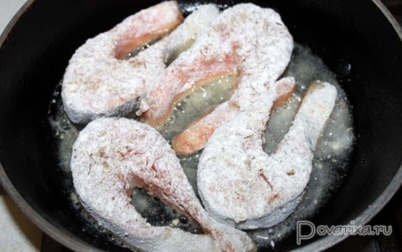 Затем 1-1,5 минуты вторую сторону – и только тут снижаем огонь до средне-слабого, дожариваем еще пару минут. Время на десятки секунд может быть разным: форель прожаривается быстро, поэтому, как только хорошо подрумянилась одна сторона – переворачиваем.